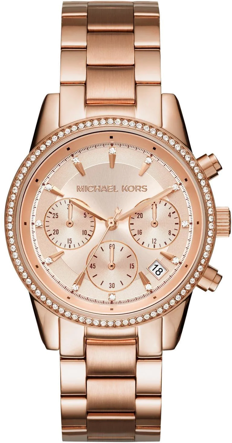 La montre Michael Kors chronographe femme réconcilie deux univers que l'horlogerie traditionnelle tenait séparés : la fonctionnalité technique du chronographe et l'esthétique glamour de la mode new-yorkaise. Chez Michael Kors, les complications ne sont pas réservées aux montres sport ou aux garde-temps masculins — elles s'habillent, elles brillent, elles séduisent.