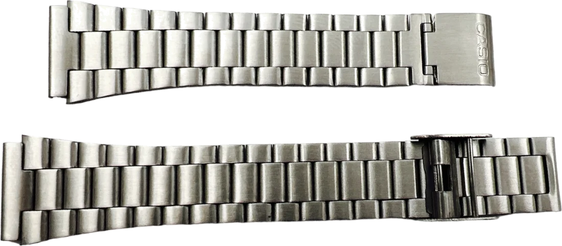 Ce bracelet de rechange pour Casio AQ-230 séduit d'abord par sa texture. L'acier brossé offre une surface mate et soyeuse sous les doigts, captant la lumière avec une discrétion élégante, sans le miroir agressif d'un poli brillant. Chaque maillon, d'une largeur parfaite de 18 mm entre les cornes, affiche une finition uniforme qui témoigne d'un usinage précis. Le résultat est un équipement qui semble avoir toujours fait partie du boîtier d'origine, sans jeu ni désalignement.