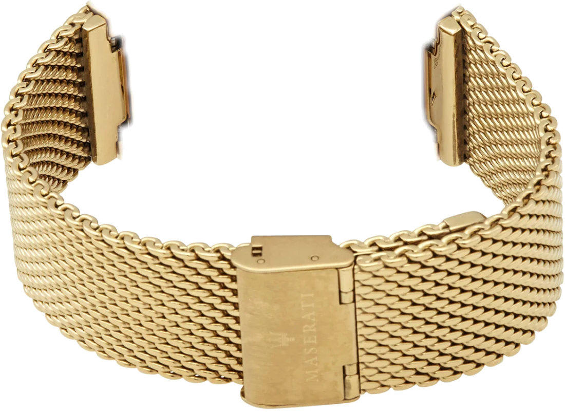 Révélez une nouvelle facette de votre Maserati Potenza avec ce bracelet de rechange en maille milanaise. Dès la prise en main, vous percevrez la qualité de sa construction : chaque maillon, en acier inoxydable finement doré, est tissé avec une précision mécanique qui évoque l’héritage technique de la marque. La surface, d’un or pâli et subtil, capte la lumière avec retenue, offrant un éclat discret qui souligne le cadran sans le dominer.