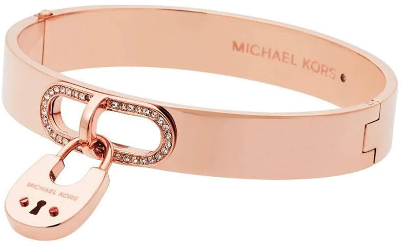 Bracelet Michael Kors MKJ4612791 en acier or rose pour femme, avec breloque cadenas et strass