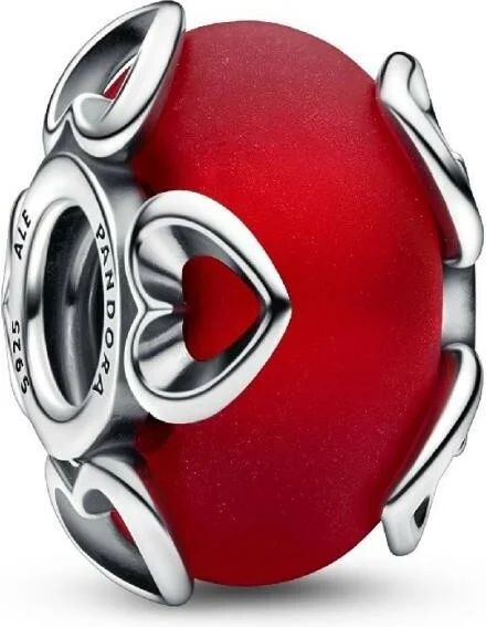 Charm Pandora Cœurs et Murano Rouge Givré
