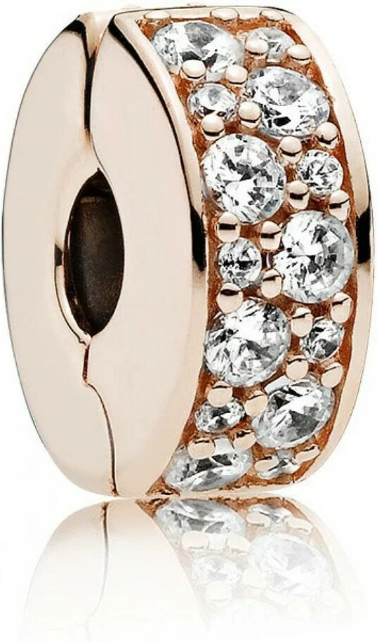 Charm Pandora Clip Pavé Transparent Pandora Moments Métal doré à l’Or Rose fin 585/1000