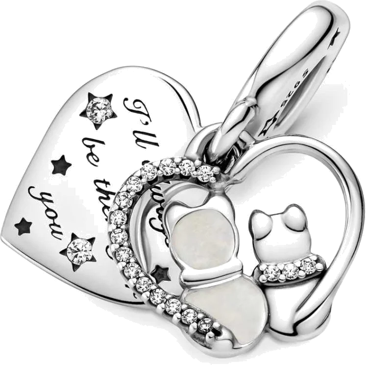 Charm Pandora Double Pendant argent Chats & Cœurs