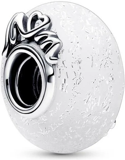 Charm Pandora Murano Blanc Pailleté Mum & Love - Pandora Moments