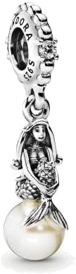 La pièce maîtresse est incontestablement la perle d'eau douce de culture sur laquelle Ariel est assise. Son orient doux et nacré, légèrement irisé, contraste subtilement avec la brillance métallique de l'argent. En le manipulant, on apprécie le poids substantiel et qualitatif du métal précieux, ainsi que la finition parfaite des bords, garantissant un accroche sans risque pour les vêtements. La breloque est conçue pour accueillir la lumière et la réfléchir, créant des jeux d'ombres et de lumières qui animent le personnage.