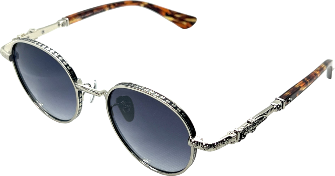 Lunettes de Soleil Chrome Hearts Unisexe Réf. 110032 - Monture Ronde Argentée, Branches Écaille de Tortue