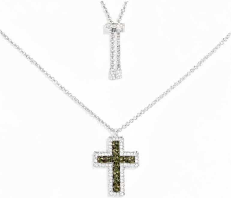 Collier Unisexe APM Monaco Croix en Argent 925 Pavé Vert Kaki Réf. AC7123XARG