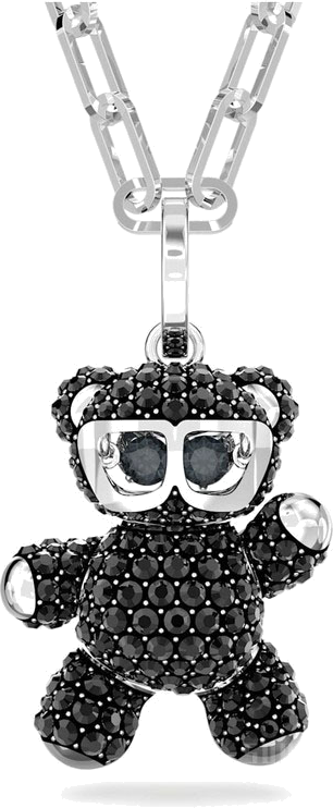 - Pendentif : Forme teddy bear entièrement sertie de cristaux Swarovski zirconium noir, taillés pour capturer la lumière.