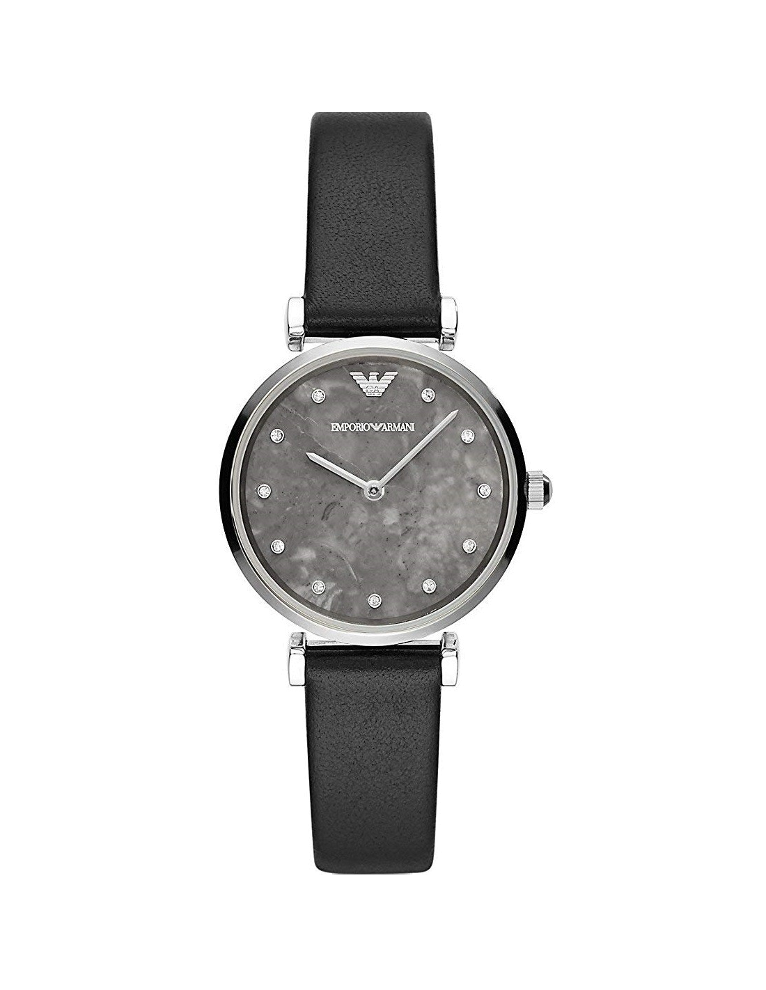 Montre Femme Emporio Armani AR11171 Cadran Gris Cristaux Swarovski Bracelet Cuir Noir