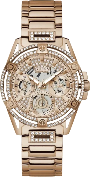 Montre Guess Queen GW0464L3 pour Femme, Cadran Or Rose à Cristaux, Bracelet Acier