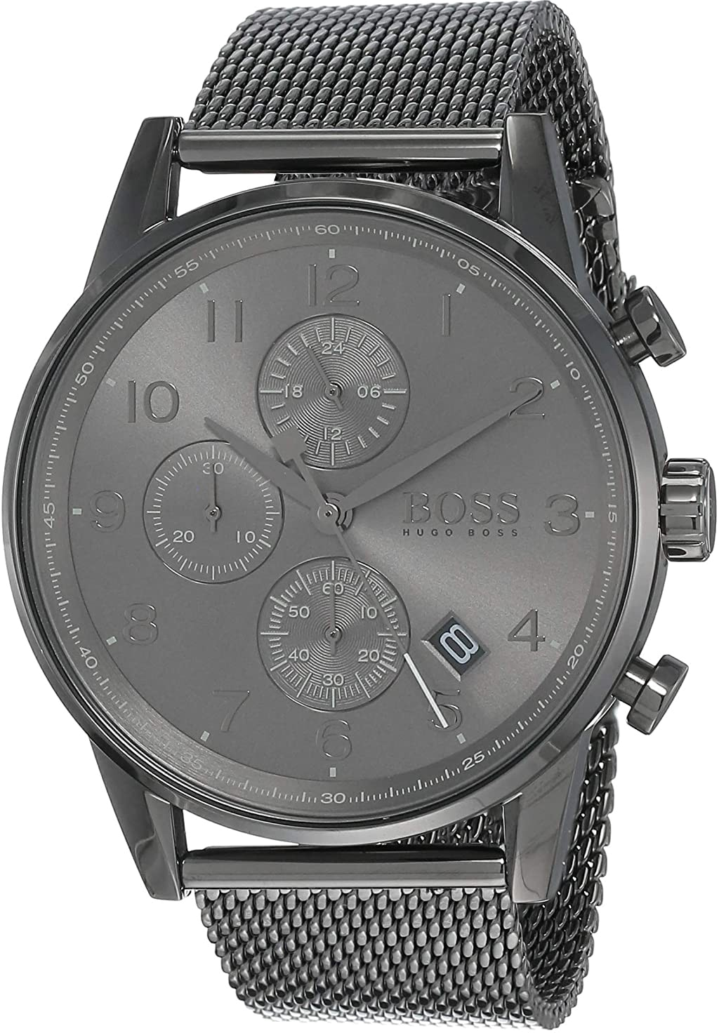 Montre Hugo Boss Navigator 1513674 pour Homme, Cadran Gris 44mm, Bracelet Maille Milanaise Acier