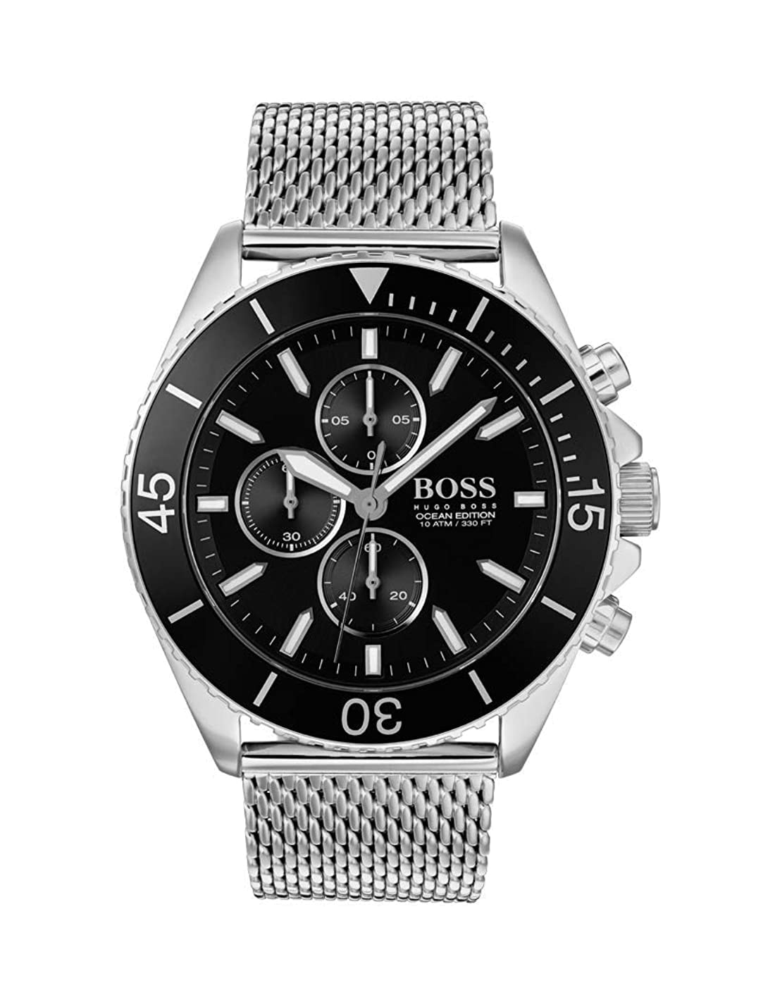 Montre Homme Hugo Boss Chronographe Ocean 1513701 Cadran Noir Acier Maille Milanaise