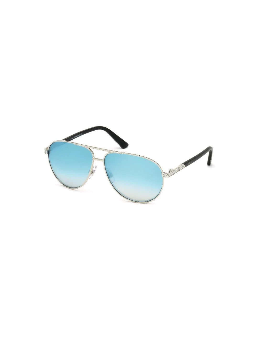 Le modèle Swarovski SK0078 16V Silver est tout simplement raffiné et distingué. Ces lunettes de soleil présentent une monture en métal de forme Aviator dont les branches ultra fines dorées affinent parfaitement les visages des femmes qui les portent. Leurs verres dégradés de couleur bleu azur garantissent une protection 100% UV.