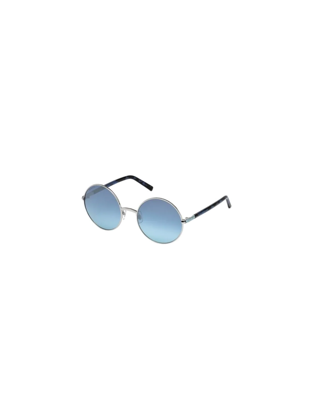 Le modèle Swarovski SK0078 16V Silver est tout simplement raffiné et distingué. Ces lunettes de soleil présentent une monture en métal de forme Aviator dont les branches ultra fines dorées affinent parfaitement les visages des femmes qui les portent. Leurs verres dégradés de couleur bleu azur garantissent une protection 100% UV.