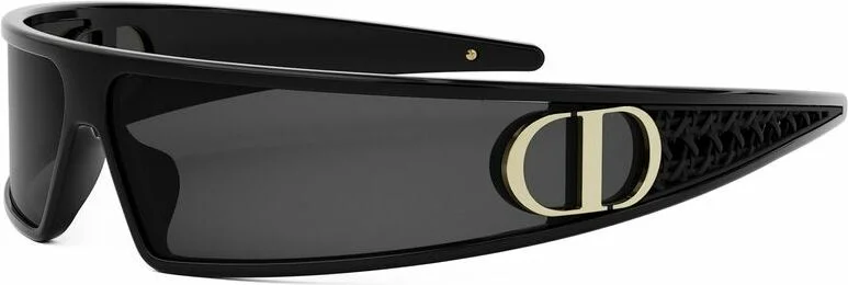 L'identité de la Maison Dior s'exprime à travers des finitions d'exception. Les branches extra-larges arborent le motif Dior Oblique en relief, tandis que le logo CD doré est discrètement incrusté sur les côtés. Les verres teintés, d'une matière nylon robuste, offrent une protection UV 100% et s'intègrent dans une construction sans monture frontale apparente, renforçant l'esthétique minimaliste et avant-gardiste de ces lunettes de soleil.