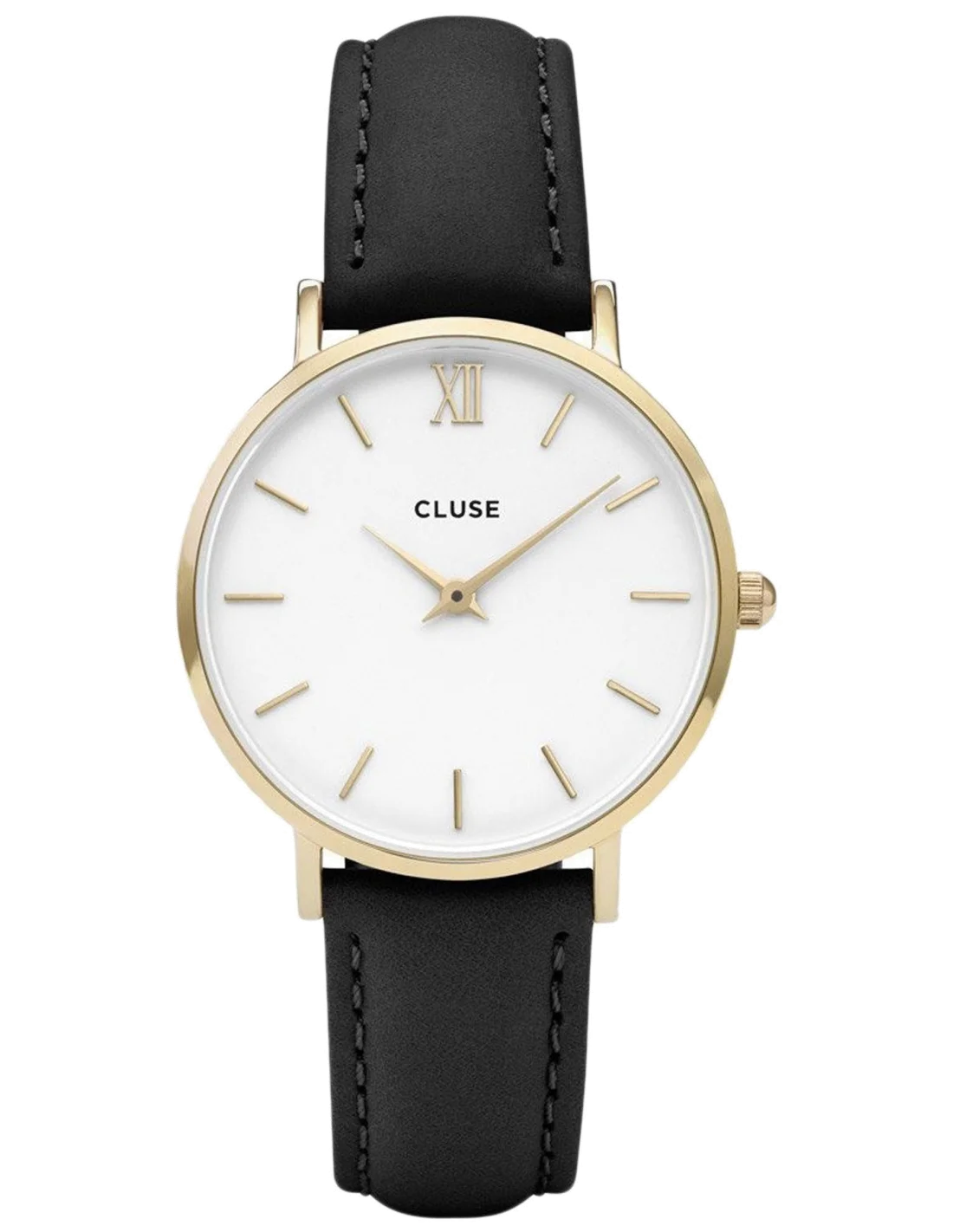 Montre Cluse Minuit CL30019 - Boîtier or, cadran blanc, bracelet cuir noir - Unisexe