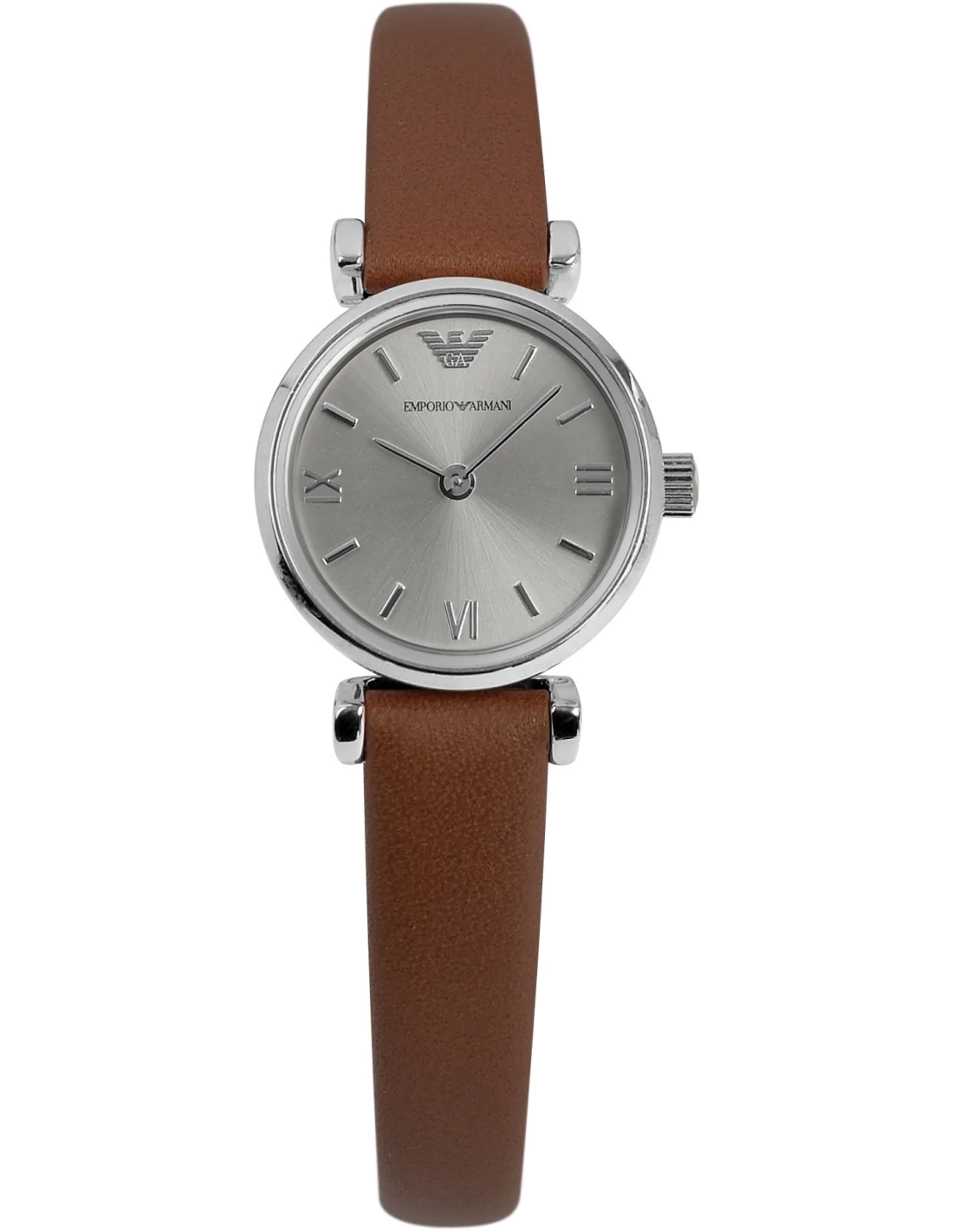 Montre Femme Emporio Armani New Retro AR1685 Cadran Argent Bracelet Cuir Marron