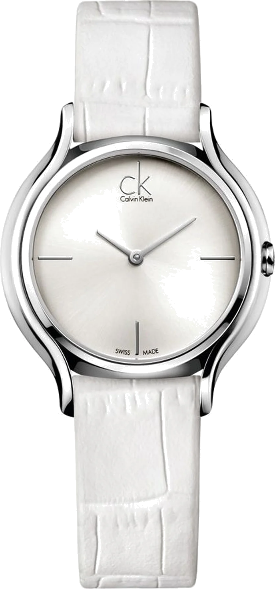 Montre Calvin Klein Skirt K2U231K6 pour Femme - Cadran Argenté, Bracelet Cuir Blanc