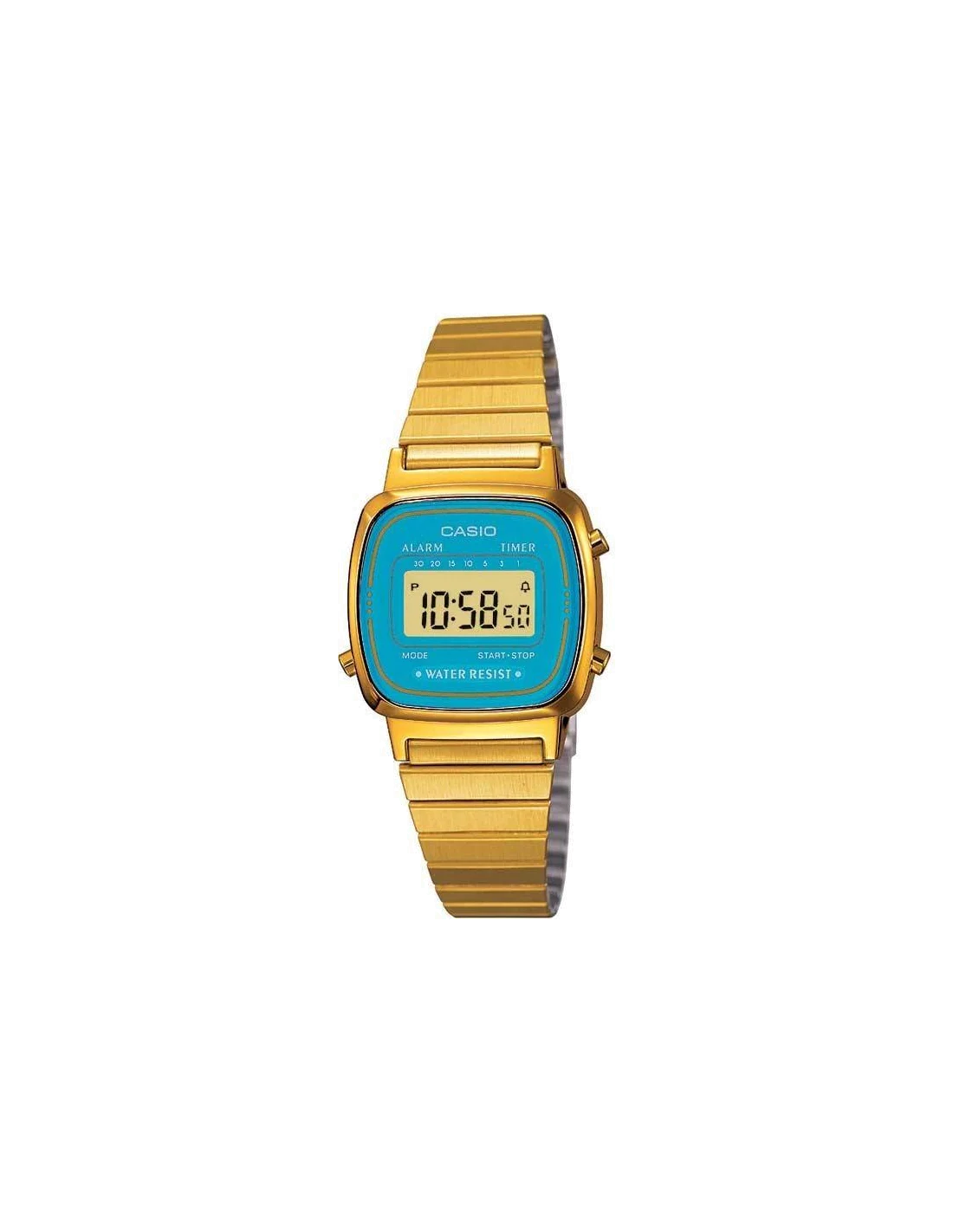 Montre Femme Casio Vintage LA670WEGA-2EF Cadran Turquoise et Boîtier Doré
