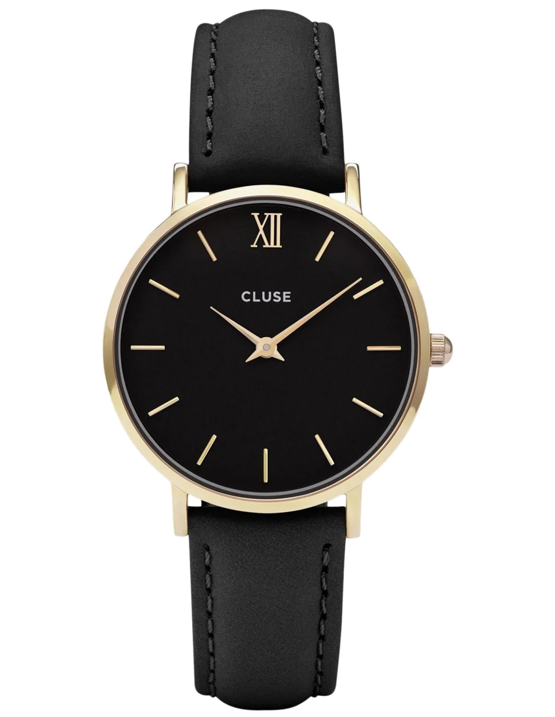 Dès la première prise en main, la Cluse Minuit CL30004 dévoile sa personnalité. Le boîtier rond en acier inoxydable, finement brossé et rehaussé d'une dorure subtile, offre une sensation de solidité et de précision. Son diamètre de 33 mm épouse parfaitement le poignet féminin, apportant une présence discrète mais affirmée. Le cadran, d'un noir profond et mat, agit comme un écrin pour les index en bâtons et chiffres romains, créant un jeu d'ombres et de lumières d'une grande lisibilité. Les aiguilles dorées y glissent avec une silencieuse élégance.