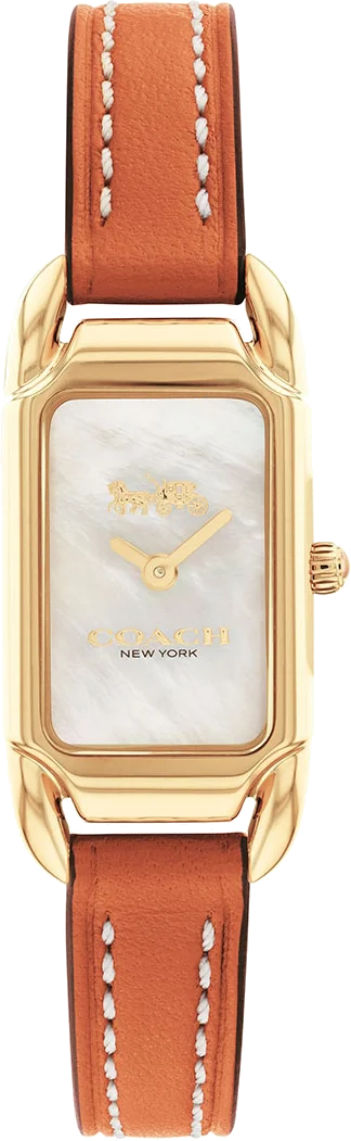 Montre-bracelet Coach Cadie 14504029 pour femme, cadran nacre rectangulaire, bracelet cuir marron