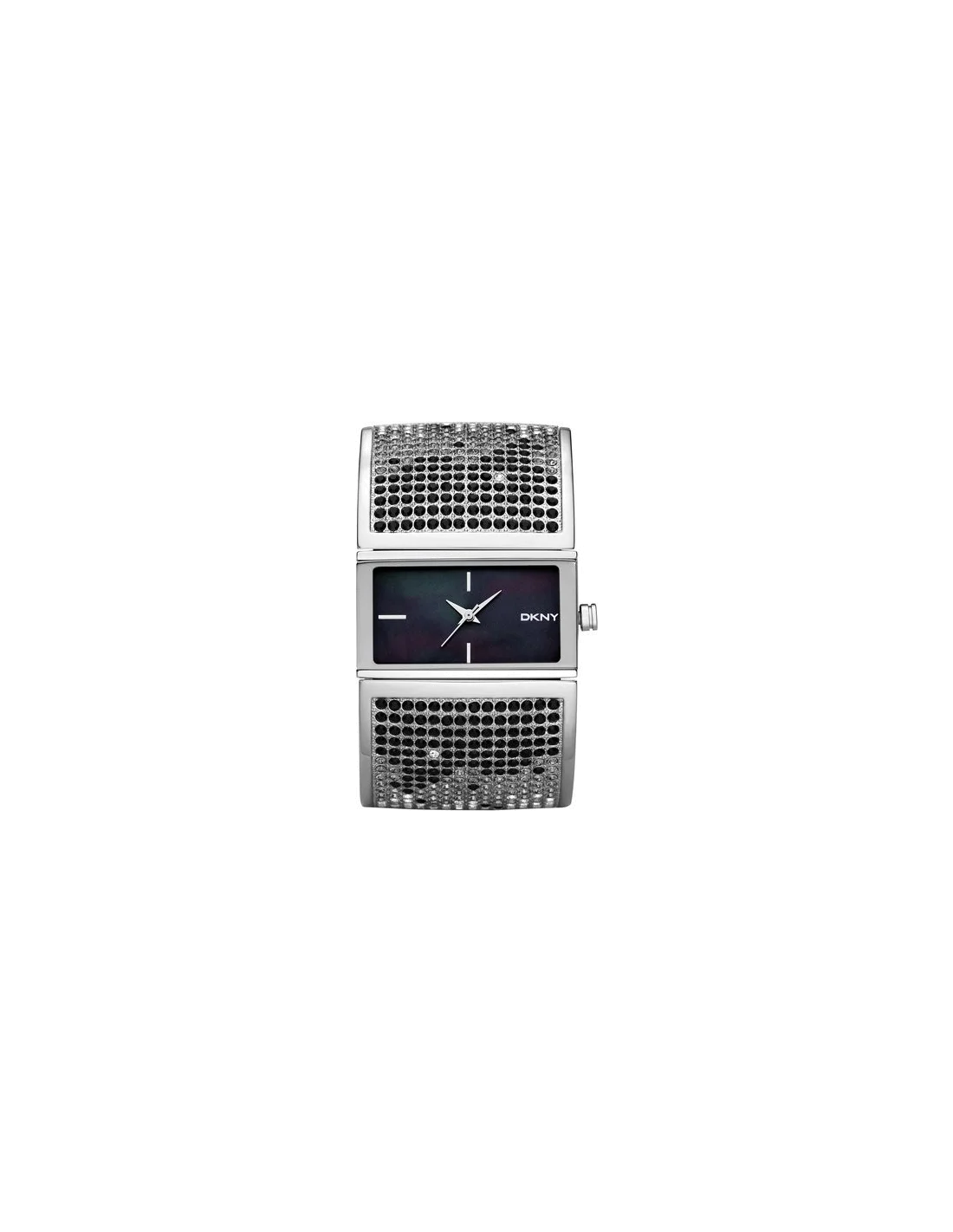 L'incontournable accessoire des amatrices de mode et de grandes marque : votre montre DKNY NY8043 habille votre poignet avec son bracelet large couvert d'incrustations noires et argent.