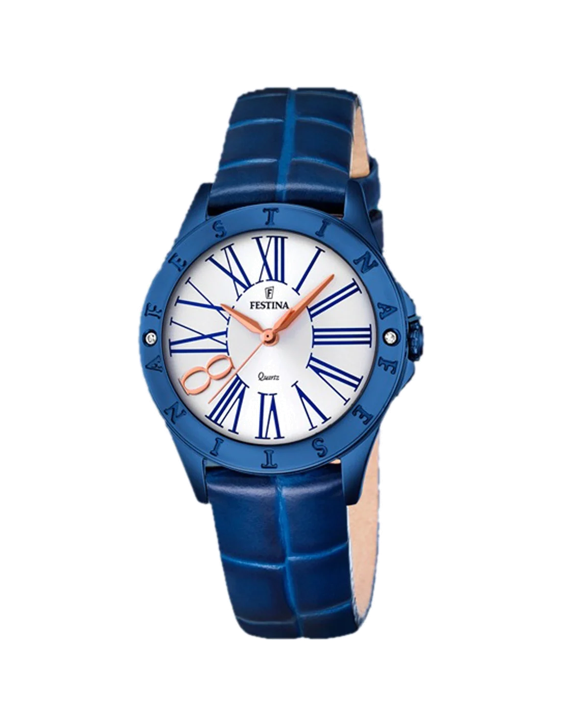 Montre Festina Boyfriend F16931/1 pour Femme - Cadran Blanc, Boîtier et Bracelet Bleu Cuir
