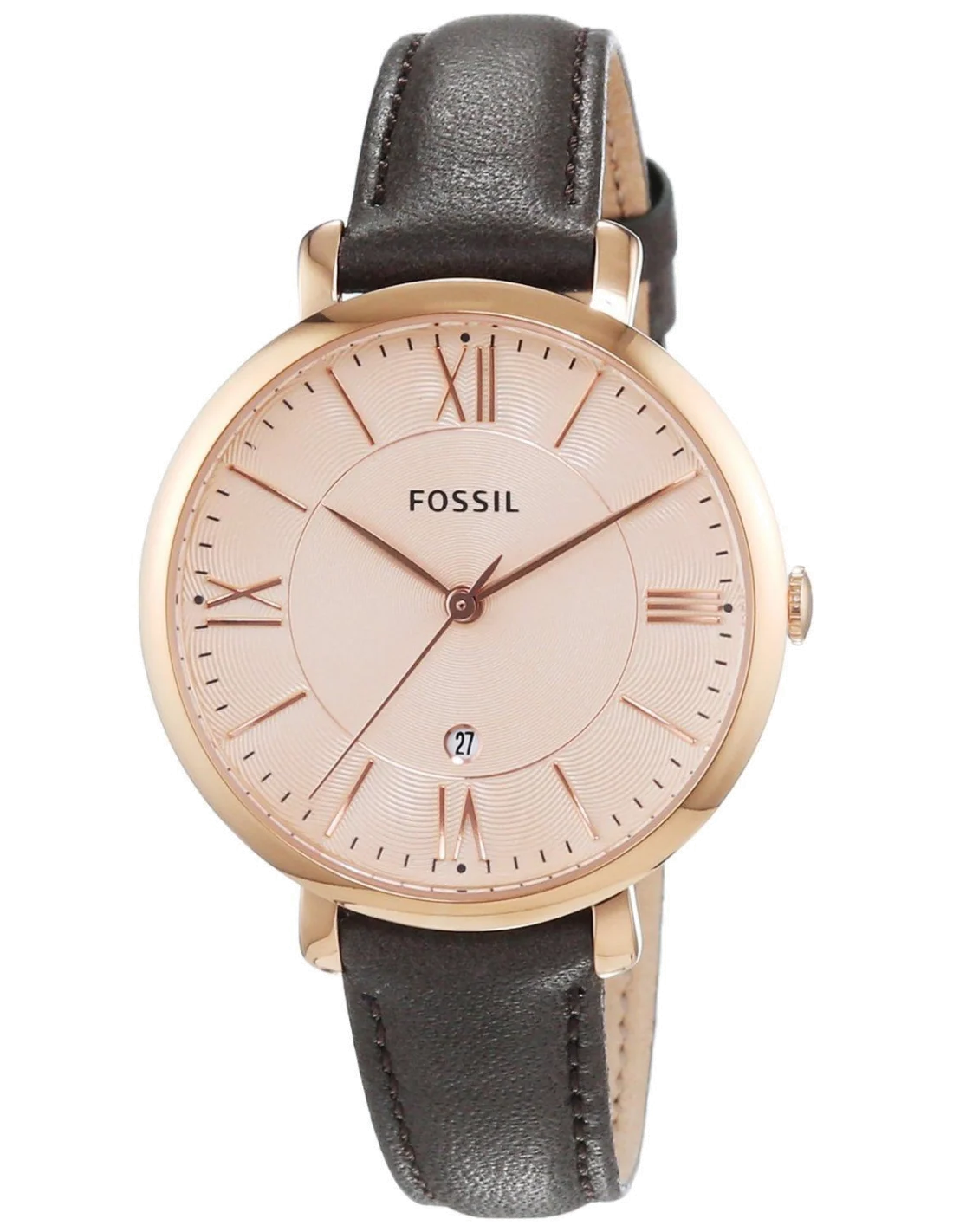 Montre Femme Fossil Jacqueline ES3707 Cadran Or Rose Bracelet Cuir Marron