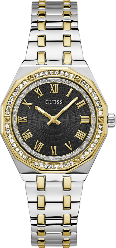 Montre Femme Guess GW0770L4 en Acier Bicolore Argent/Or, Cadran Noir Guilloché