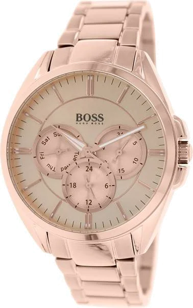 Cette montre Hugo Boss de couleur Or Rose avec son bracler en Acier inoxydable pour Femme dispose d'un cadran de 40mm.