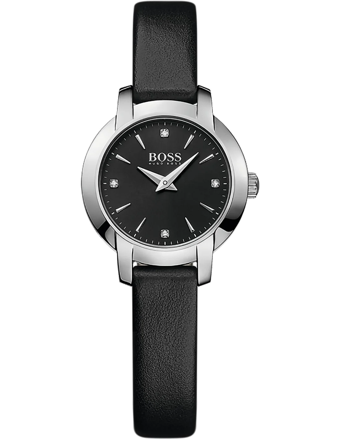Cette montre Hugo Boss de couleur Noir avec son bracler en Cuir pour Femme dispose d'un cadran de 26mm.