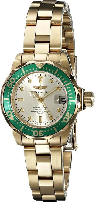 Montre Femme Invicta Pro Diver 17570 Lunette verte et acier doré