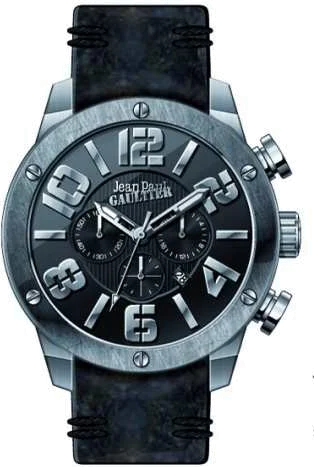 Cette montre Jean Paul Gaultier au look classique, se compose d'un bracelet en cuir noir.