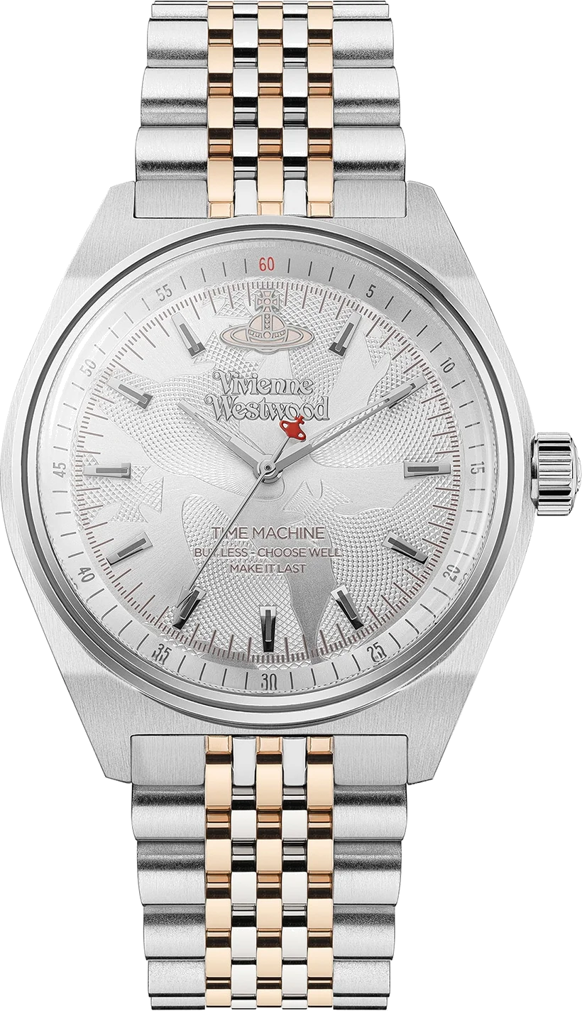 La montre Vivienne Westwood Lady Sydenham VV251WSSR incarne l'audace chic de la créatrice. Ce modèle féminin associe un cadran argenté à la finition soleil à un bracelet en acier inoxydable bicolore, mariant l'argent et l'or rose pour un contraste raffiné. Le logo Orb iconique en relief à 12 heures signe ce bijou de poignet d'une identité unique.