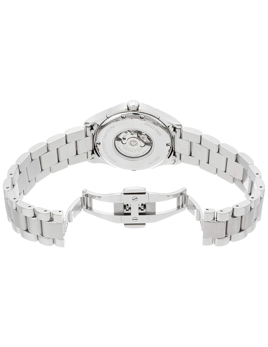 Montre Hamilton H32315191 Jazzmaster Viewmatic Lady automatique cadran reflets violets bracelet acier 34 mm