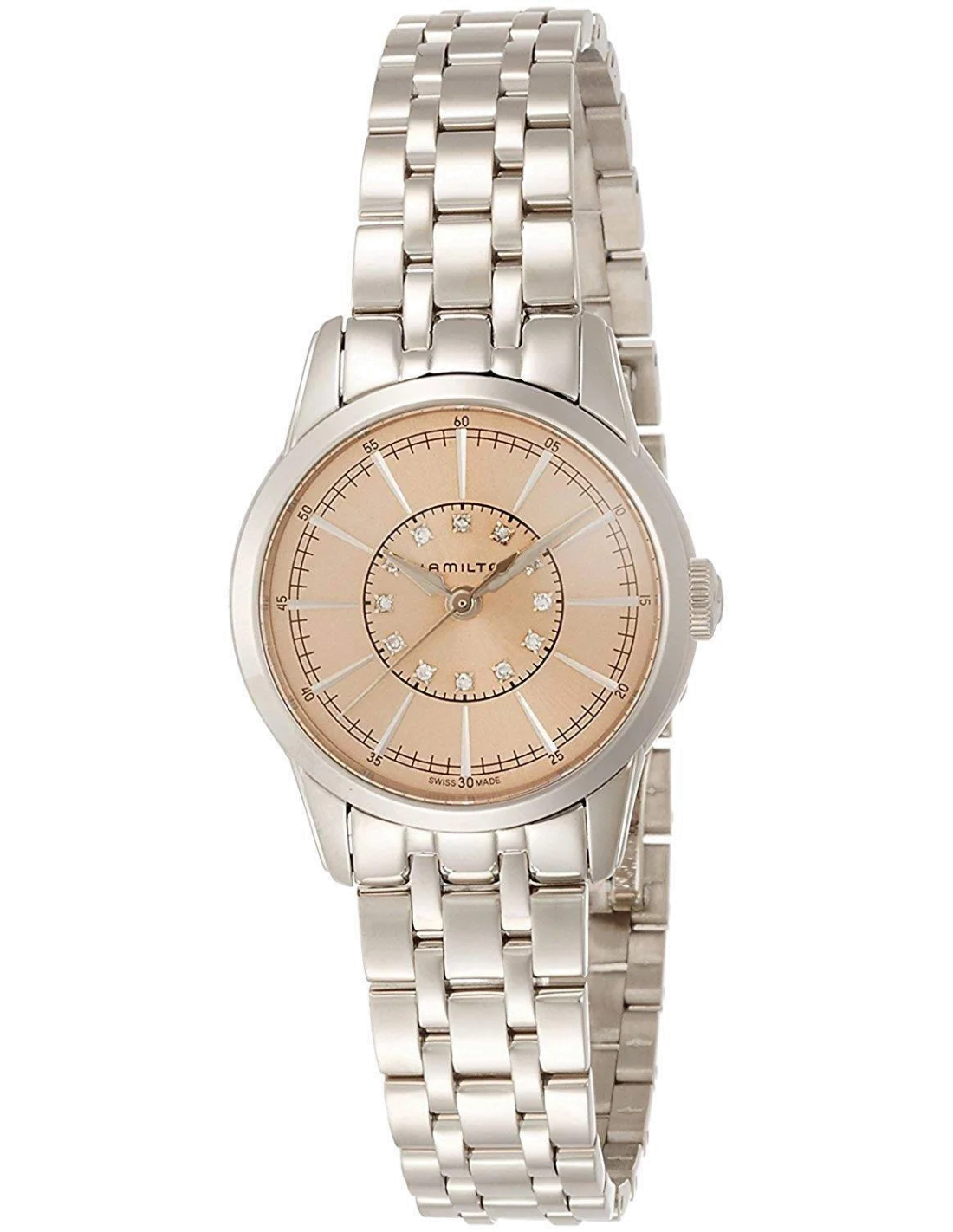 Montre Hamilton H40311121 American Classic RailRoad Lady quartz acier 12 diamants 28 mm