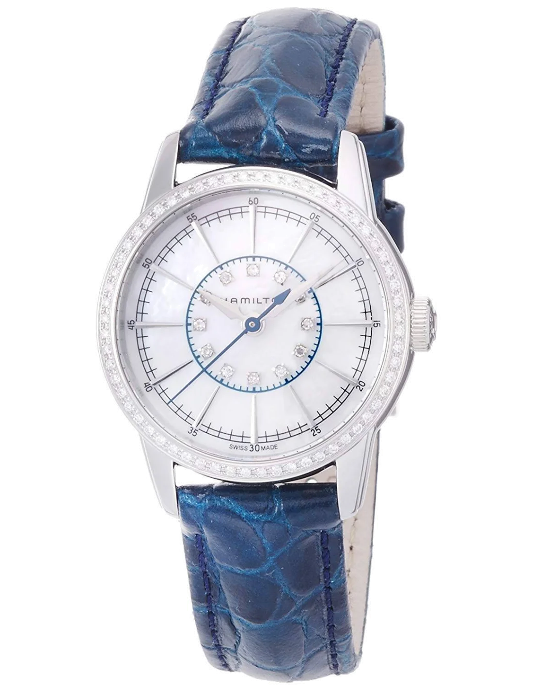 Montre Hamilton H40391691 Railroad quartz cadran nacre et diamants lunette diamants bracelet cuir