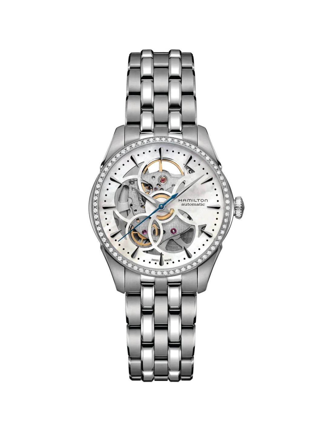 Montre Hamilton H42405191 Jazzmaster Skeleton Lady automatique acier et diamants