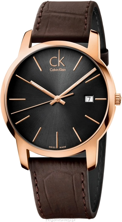 Montre Homme Calvin Klein City K2G2G6G3 - Cadran Noir, Boîtier Or Rose, Bracelet Cuir Marron
