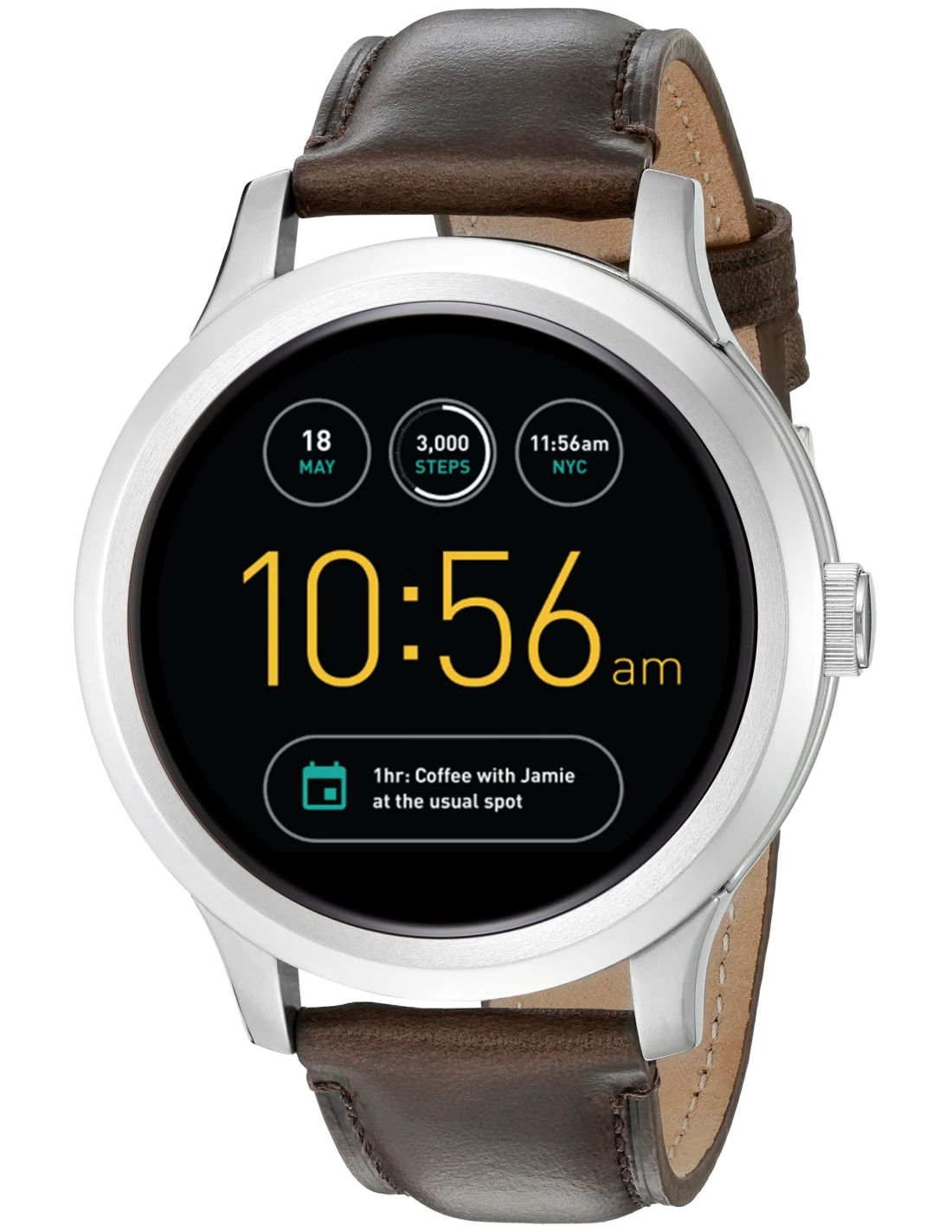 La Fossil Q Founder FTW20011 est la pièce hybride idéale pour l'homme actif qui ne souhaite pas sacrifier l'esthétique à la fonctionnalité. Son design intemporel lui permet de passer sans effort du cadre professionnel, où elle affiche notifications d'appels et agendas avec discrétion, aux moments de détente, où elle suit votre activité quotidienne. Son bracelet cuir marron s'associe naturellement avec une garde-robe business-casual, relevant une chemise et un blazer, mais s'accorde tout aussi bien avec un style décontracté le week-end.