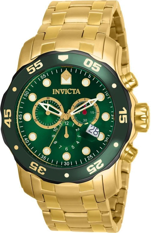 Montre Homme Invicta Pro Diver 80072 Bracelet doré et cadran vert