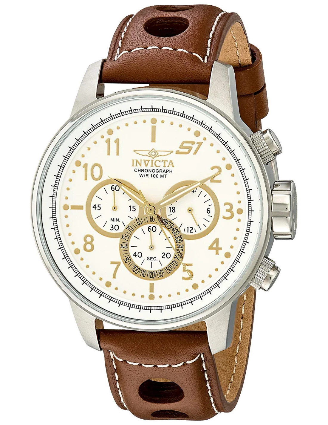 Montre Homme Invicta S1 Rally 16010 Bracelet brun perforé coutures blanches