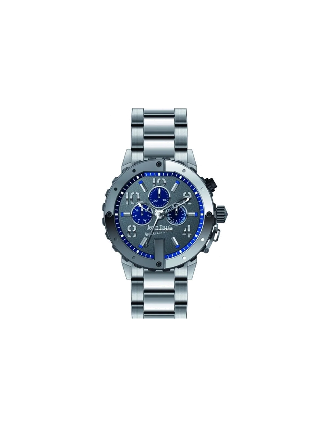 La montre Jean Paul Gaultier est composée d'un cadran multifonction gris.