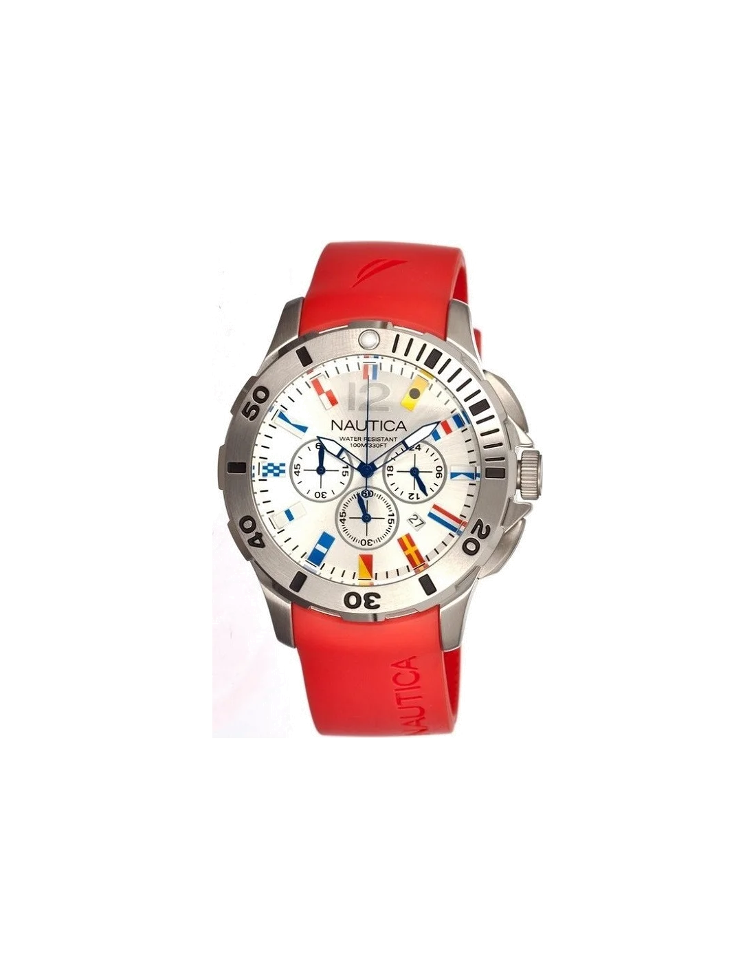 Montre Homme Nautica BFD 101 A18639G - Bracelet rouge et cadran avec drapeaux