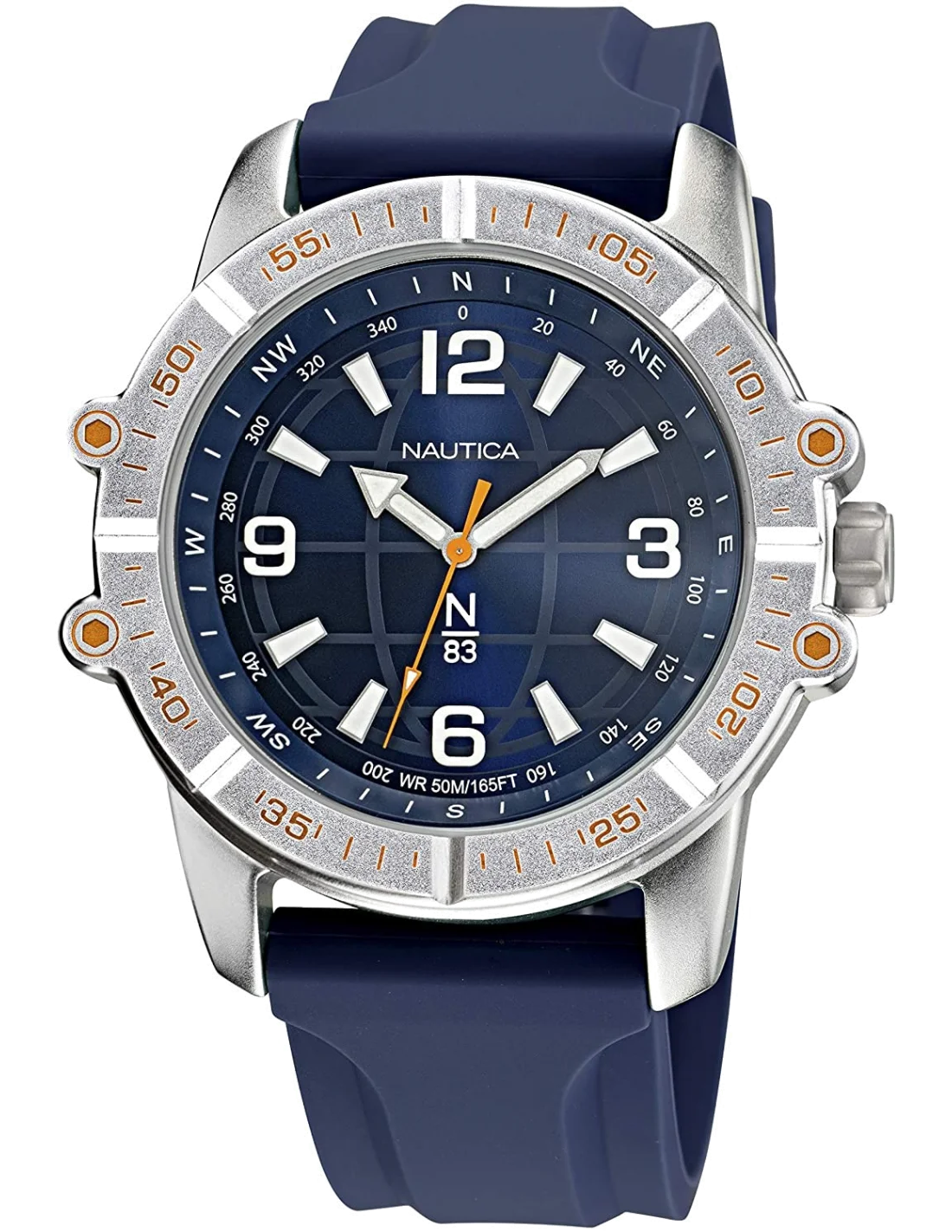 La montre Nautica NAPGCF011 s'impose d'emblée par son équilibre entre une robustesse affirmée et une esthétique maritime contemporaine. Son boîtier en acier inoxydable, finement brossé, offre une présence au poignet à la fois substantielle et confortable, sans lourdeur. La sensation est celle d'un objet solide, conçu pour accompagner le mouvement, renforcée par la douceur et la flexibilité du bracelet en silicone qui épouse parfaitement la morphologie du poignet.