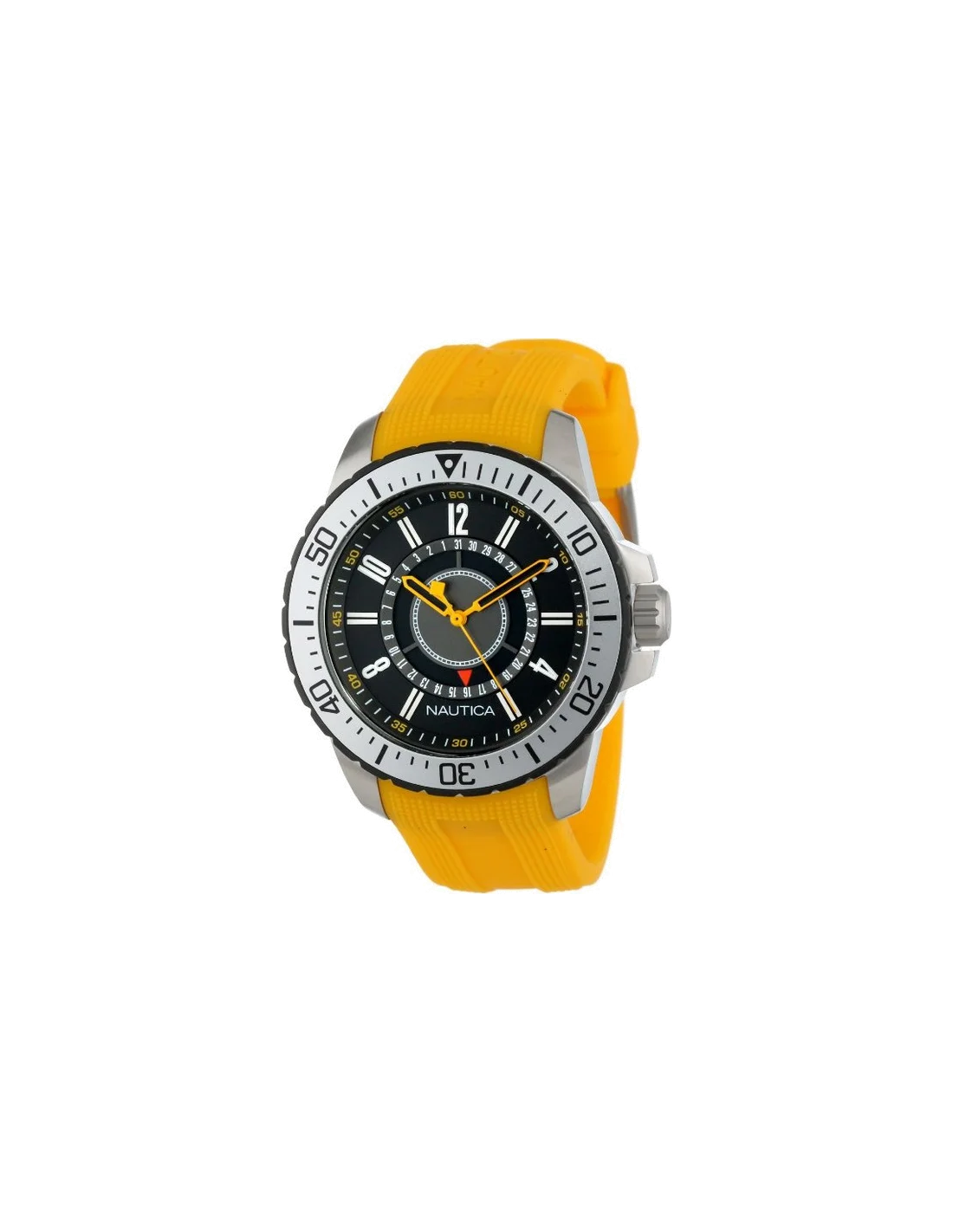 Nautica vous propose un modèle à bracelet jaune en silicone.