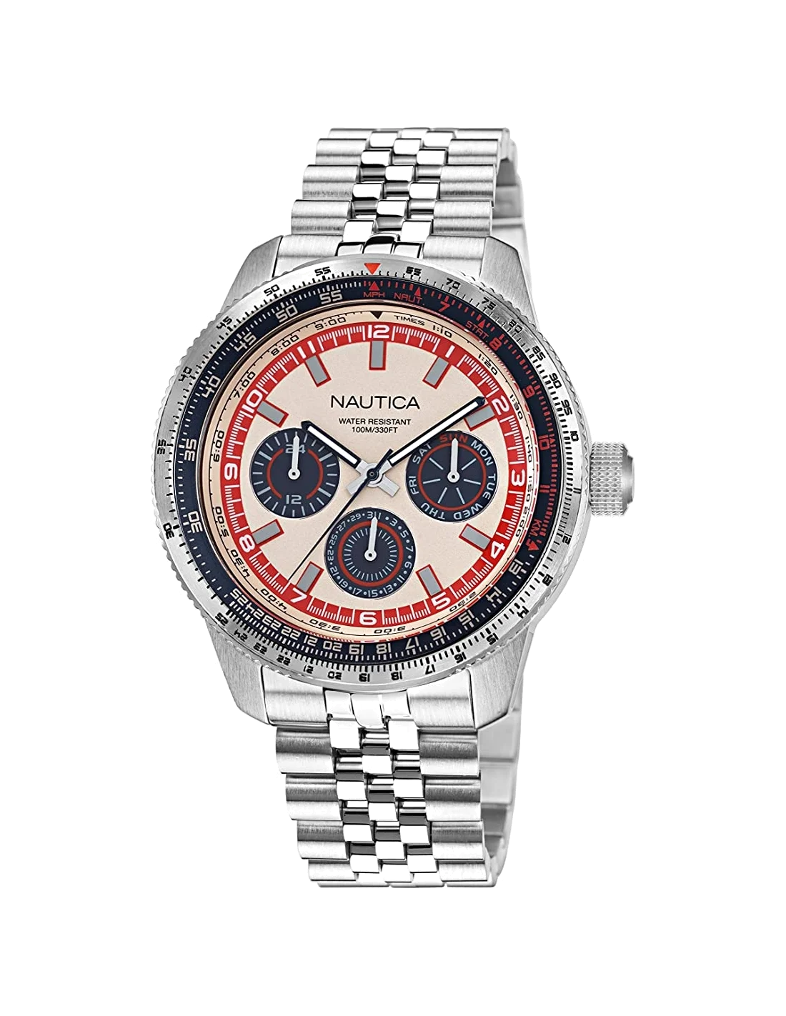Montre Homme Nautica Quartz en acier inoxydable et bracelet supplémentaire en silicone bleu