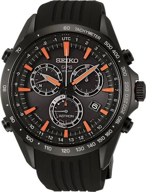 Montre Homme Seiko Astron GPS Solar SSE017J1 Index oranges et caoutchouc noir