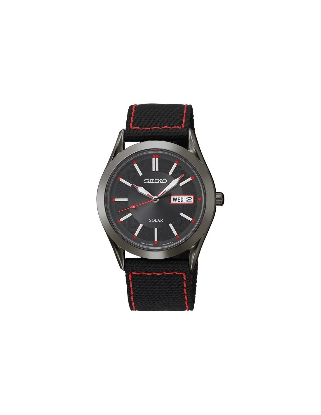 Montre Homme Seiko Solar SNE239 Bracelet noir avec finitions rouges