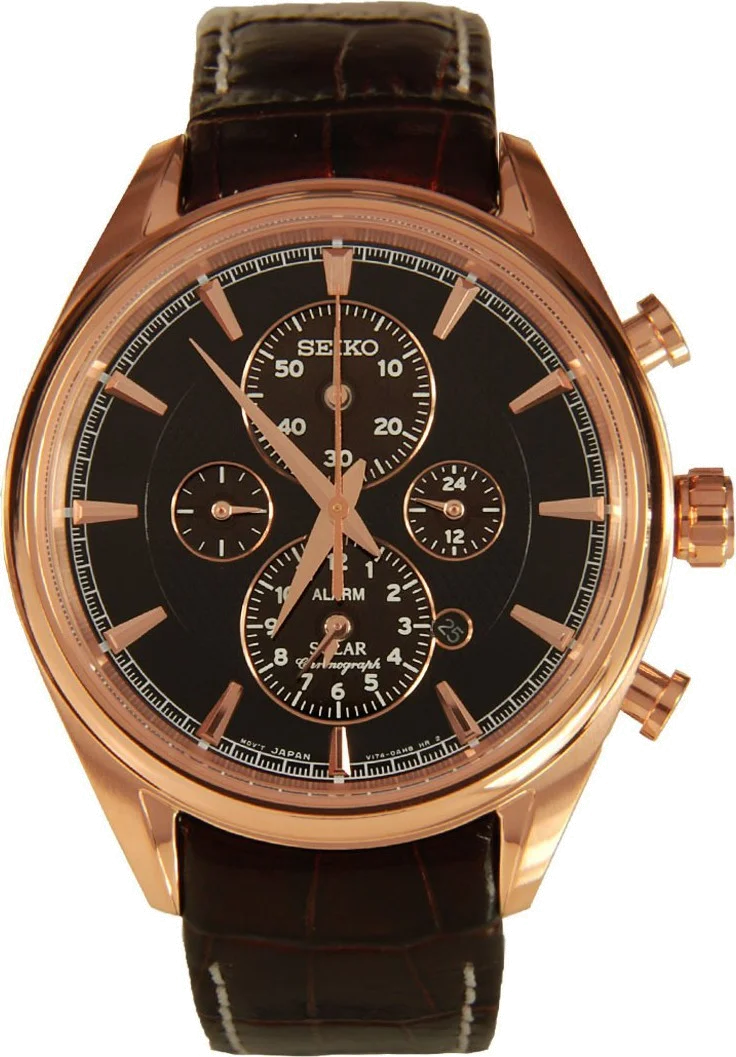 Montre Homme Seiko Solar SSC212P1 Chronograph Bracelet En Cuir Brun